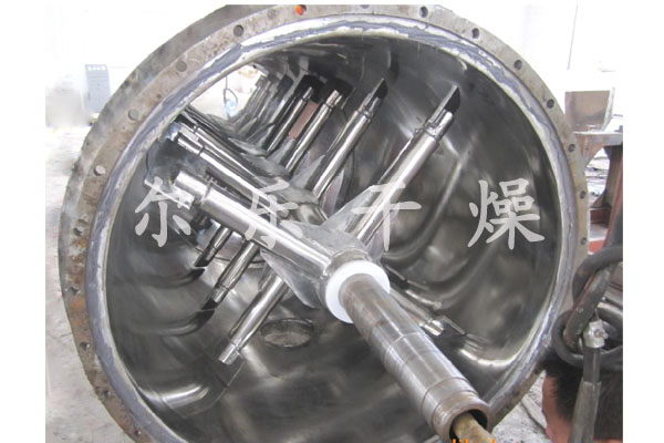 真空耙式干燥機(jī)是一種新穎臥式間歇式真空干燥設(shè)備,濕物料經(jīng)傳導(dǎo)蒸發(fā),帶有刮板攪拌器不斷清除熱面上的物料,并在容器內(nèi)推移形成循環(huán)流,水份蒸發(fā)后由真空泵抽出。