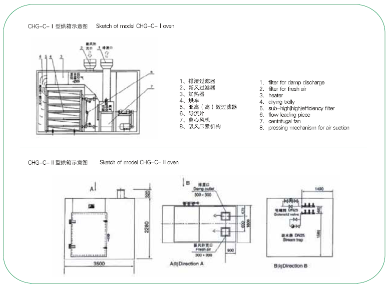 ● 空氣進(jìn)出口都有空氣過濾器,不會(huì)污染被干燥的物料,影響其品質(zhì)。烘箱加熱熱源可采用蒸汽或電加熱。