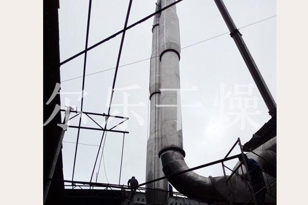 底部強化器設計獨特,攪拌齒為菱形,其流線性能使風阻達到小,設置在圓錐形料斗內(nèi),分動刀和定刀,粉碎效果顯著,使下落的結塊物料迅速粉碎為適合氣流干燥的粉粒料,攪拌的另一個主要作用是分散物料,加大了與料斗下面進來的高速熱風的接觸面積,于是料斗區(qū)形成了一個強烈傳熱傳質(zhì)的流化床,大部分濕分在料斗區(qū)被干燥。隨著干燥的進行,變輕變細的干料受氣流作用明顯,與氣流一起上升并進一步干燥,從干燥塔頂部出來進入物料收集系統(tǒng)。