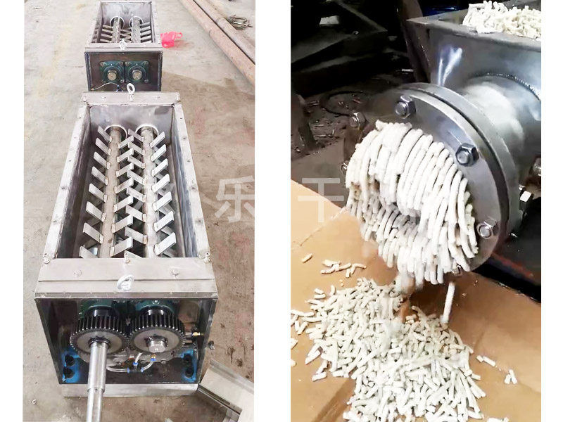物料成型:長主形條狀,成型效果一般。配套網(wǎng)帶式烘干機使用。